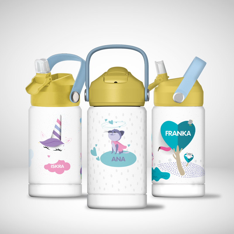 Personalizirana termo dječja boca za vodu pruža izvrsno zadržavanje topline i hladnoće, a obzirom da se naručuje s imenom djeteta, idealna je i kao boca za školu i vrtić.
